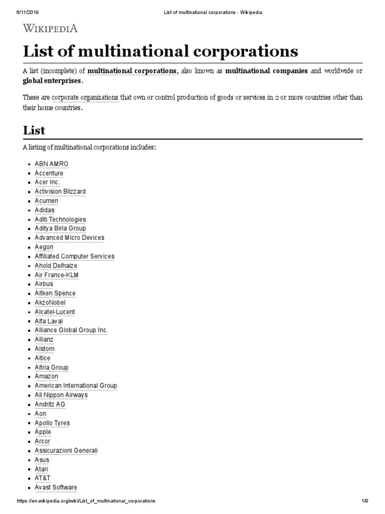 List Of Multinational Corporations Wikipedia Companies Service Companies